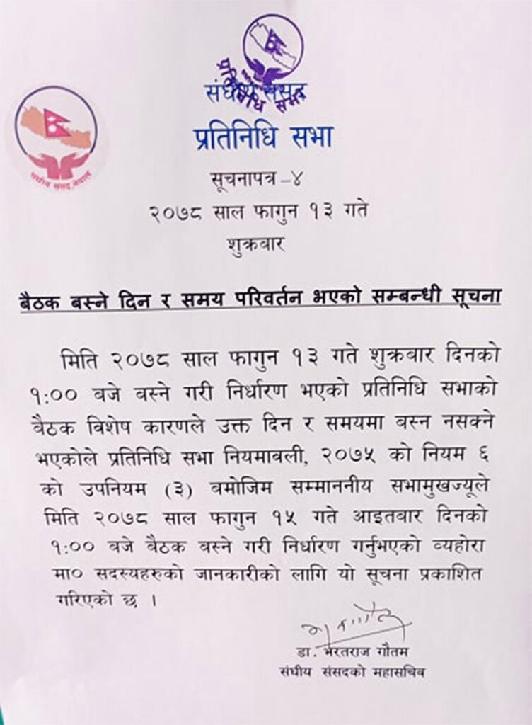 सरकारको आग्रहमा प्रतिनिधि सभा बैठक स्थगित, अर्को बैठक आइतबार लाई सर्यो