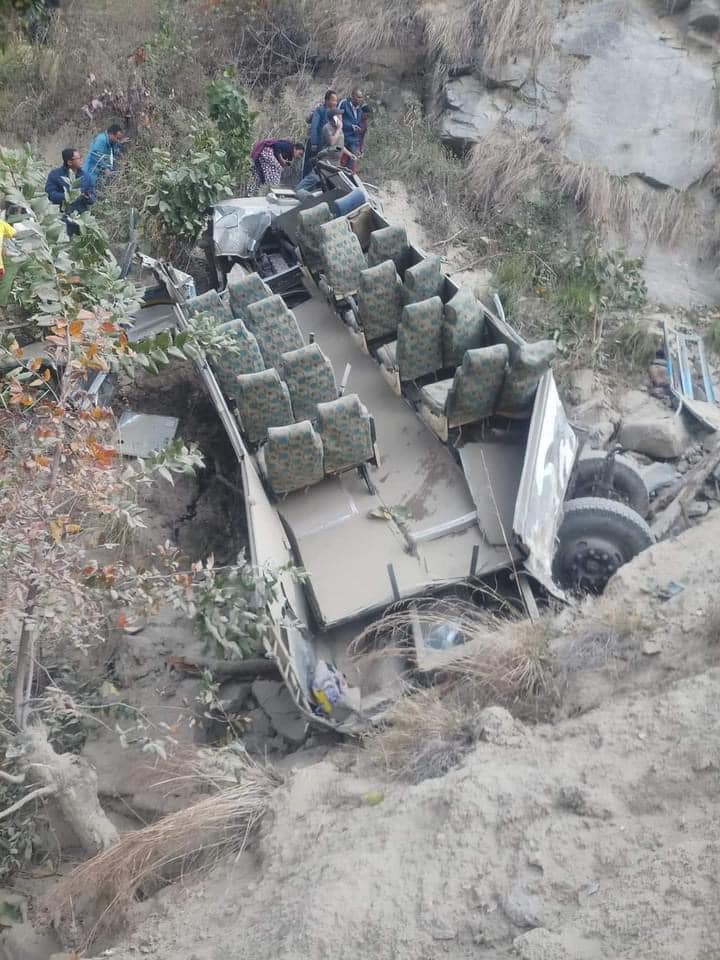 बस दुर्घटनामा १४ जनाको मृत्यु भएको प्रमुख जिल्ला अधिकारी नूरहरि खतिवडाले जानकारि दिएका छन उनका अनुसार १४ जनाको घटनास्थलमै मृत्यु भएको भन्ने खबर छ । सशस्त्र प्रहरी र प्रहरी पुगेर उद्धारको काम गरिरहेको छ।’ बस सडकबाट ३ सय मिटर तल खोलामा खसेको थियो ।