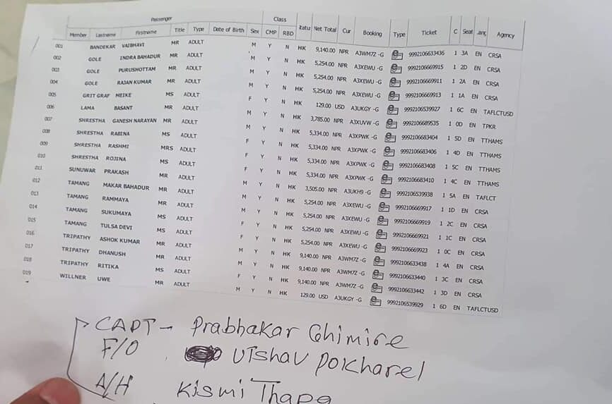 दुई विदेशी, दुई भारतीय नागरिक र १३ जना नेपाली सहित १९ र चालक दल सहित २२ जना सवार जना लिएर उडेको जहाज लेतेमा ठोक्किएको छ ।