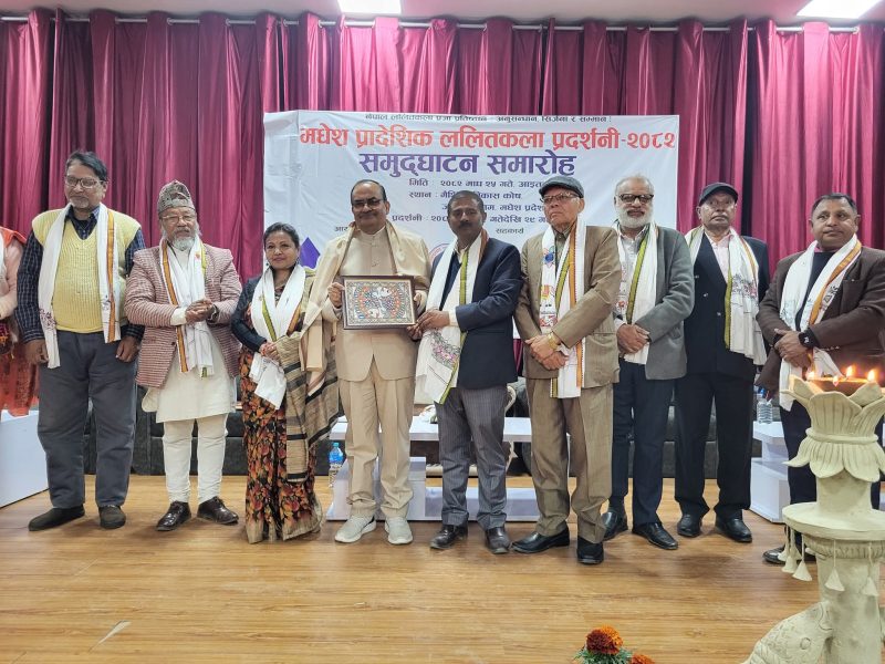 जनकपुरधाम- मधेश प्रादेशिक ललितकला प्रदर्शनी २०८२ आइतवारदेखि प्रारम्भ भएको छ । मधेश प्रदेशको राजधानी जनकपुरधामस्थित मैथिली विकास कोषको भवनमा आयोजना गरिएको प्रदर्शनीको प्रदेश प्रमुख डा. सुरेन्द्र लाभले उद्घाटन गरेका हुन् ।