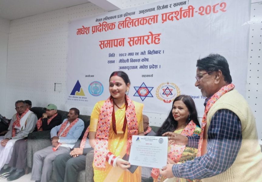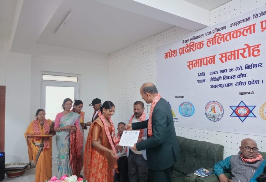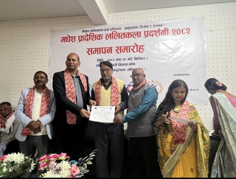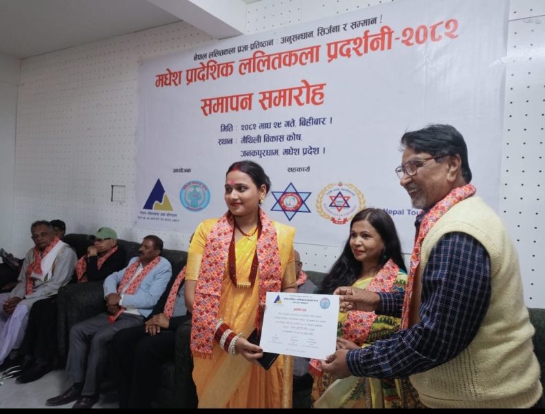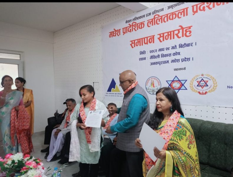 नेपाल ललितकला प्रज्ञा प्रतिष्ठान र मैथिली बिकास काेष काे आयोजना गरिएको प्रादेशिक ललितकला प्रदर्शनी काे आज समापन भएको छ।